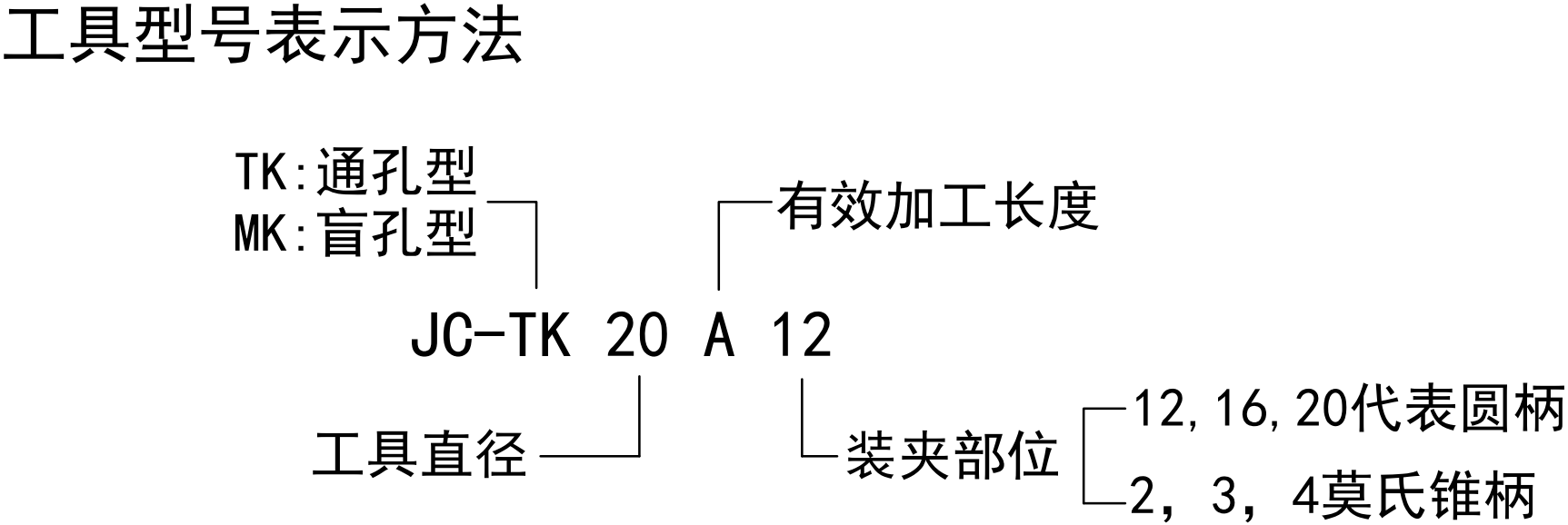 | ΦD | ΦG | 通孔/盲孔 | A | B | C | D | 直柄 | H | 錐柄 | H |